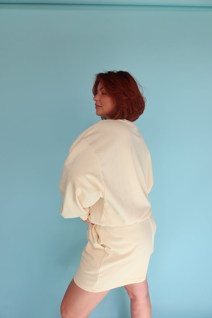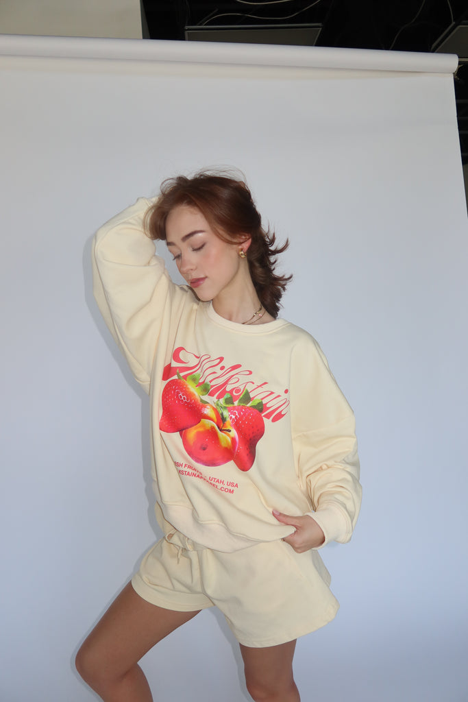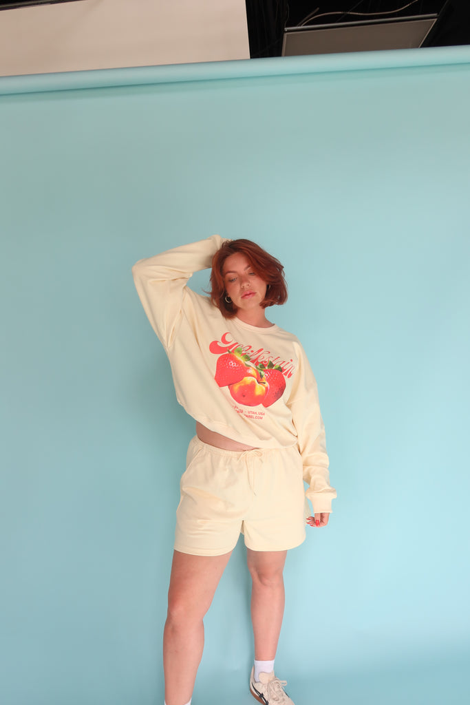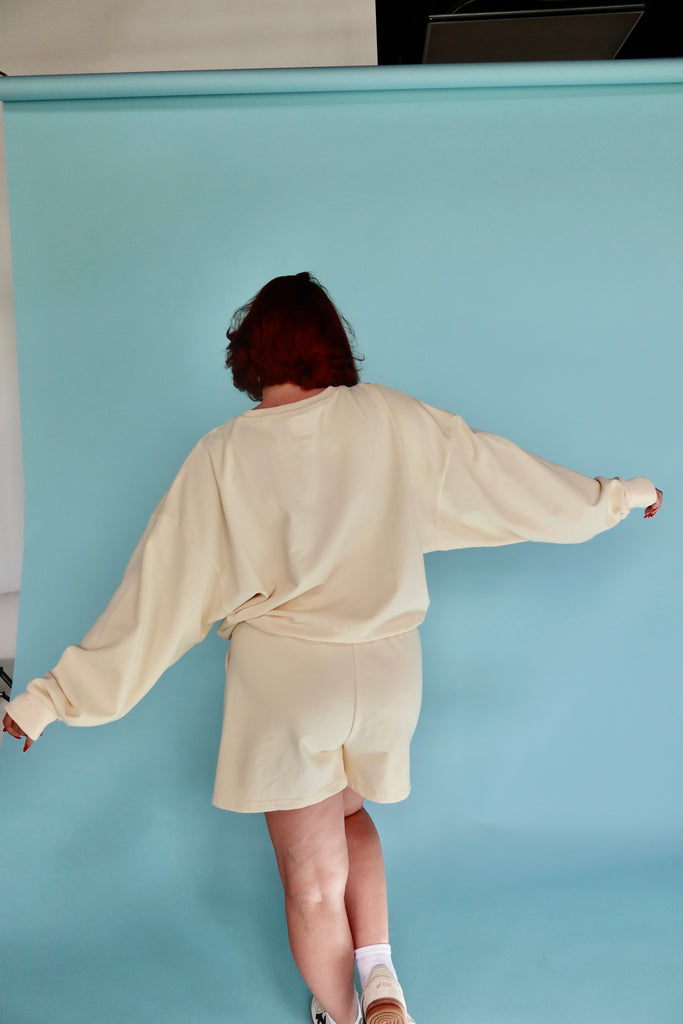 The Market crew has the same fit you know and love. Made from our Vintage French Terry- it is lightweight and perfect for summer.