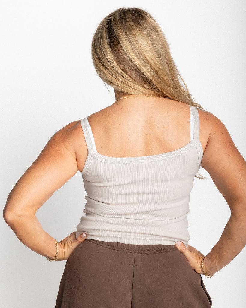 This tank was made to throw on for the gym, errands, with jeans, anything. The perfect basic ribbed tank to have in your closet.