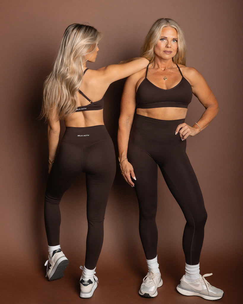 LIsa is wearing a Medium in the V bra, Nicolette is wearing a small.