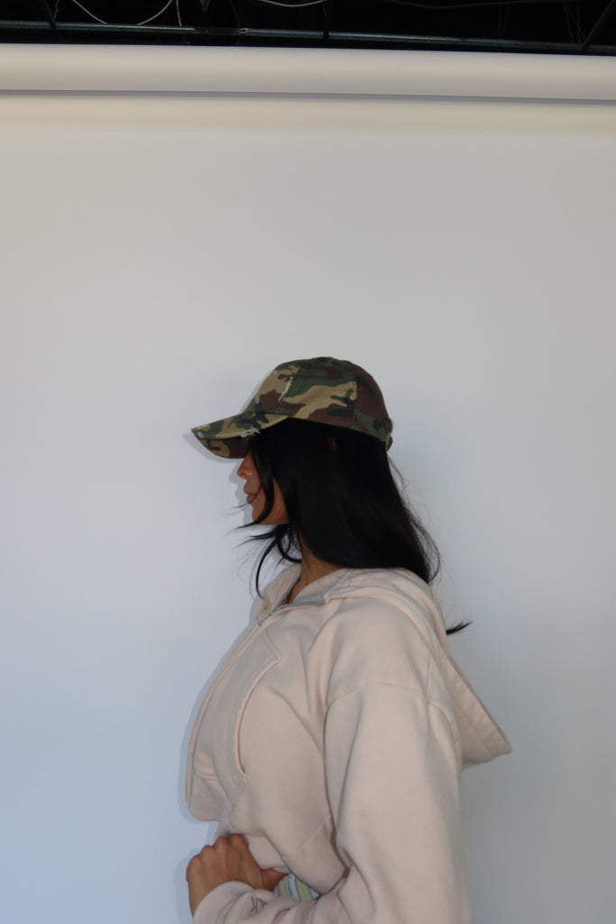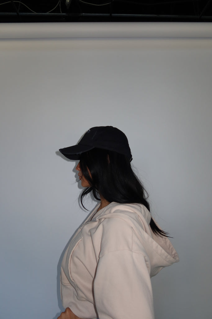 The best for bad hair days, gym days, or just to style. Our baseball cap has an adjustable back and slight distressing on it.
